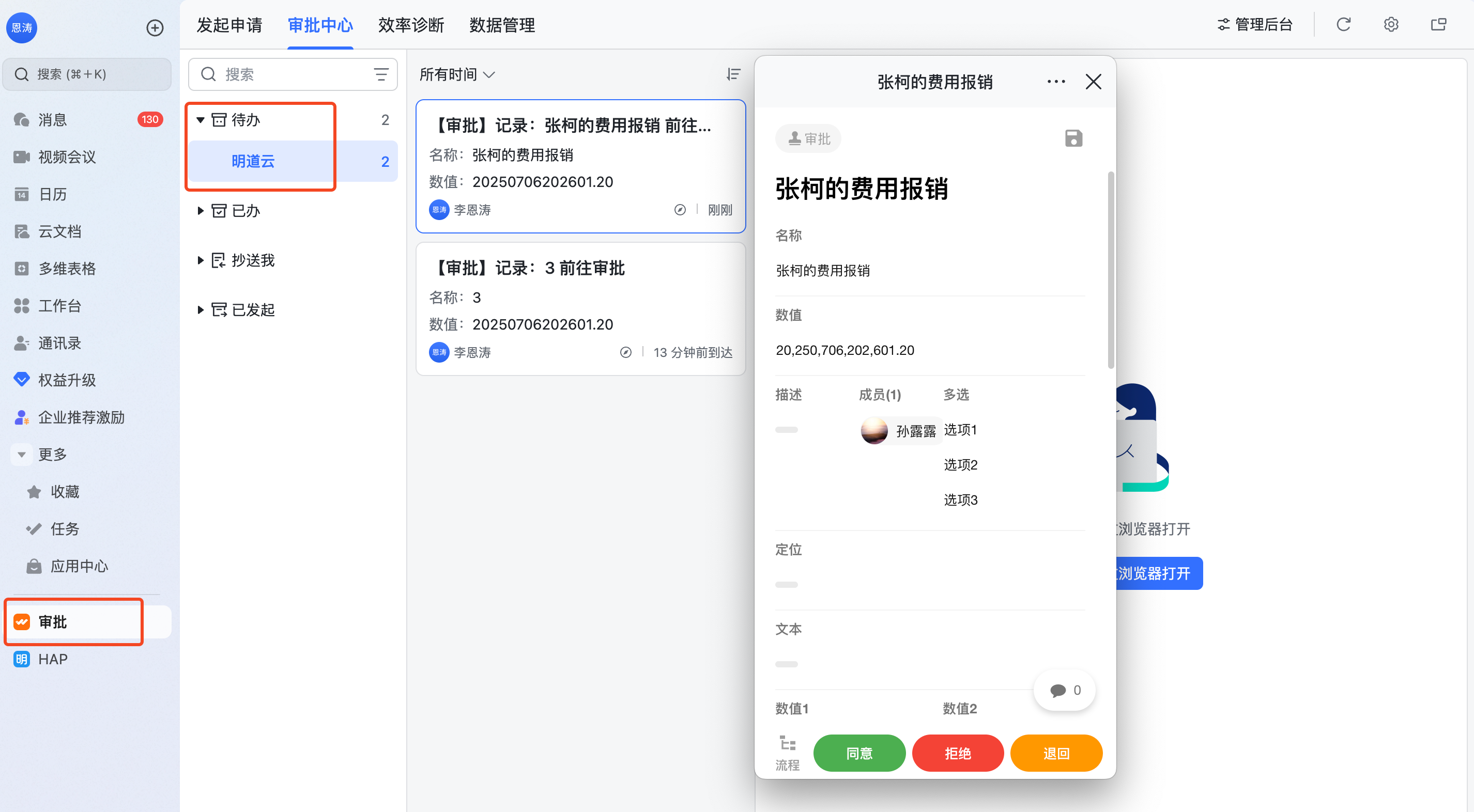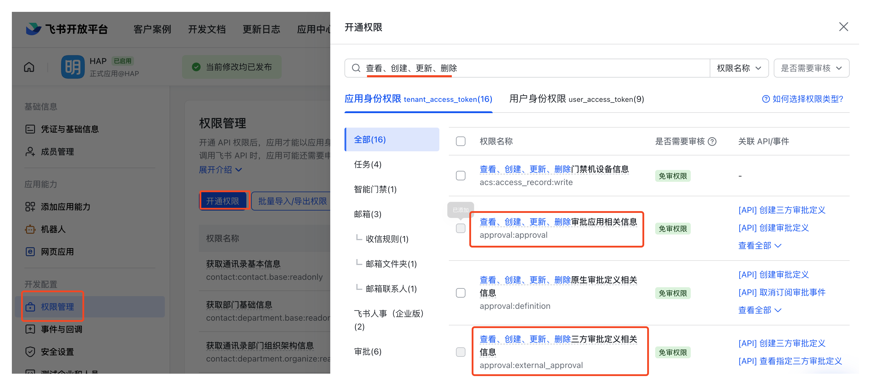 Lark是飞书海外发布的版本,功能和操作都一致,和HAP平台的集成操作以及效果也完全一致,本文以飞书为例进行介绍。