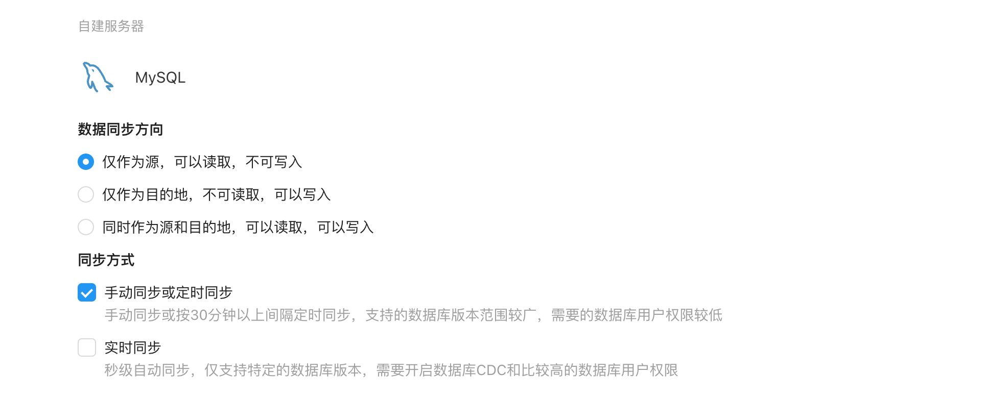 不同类型数据源支持的数据同步方向与同步方式不同,汇总如下: