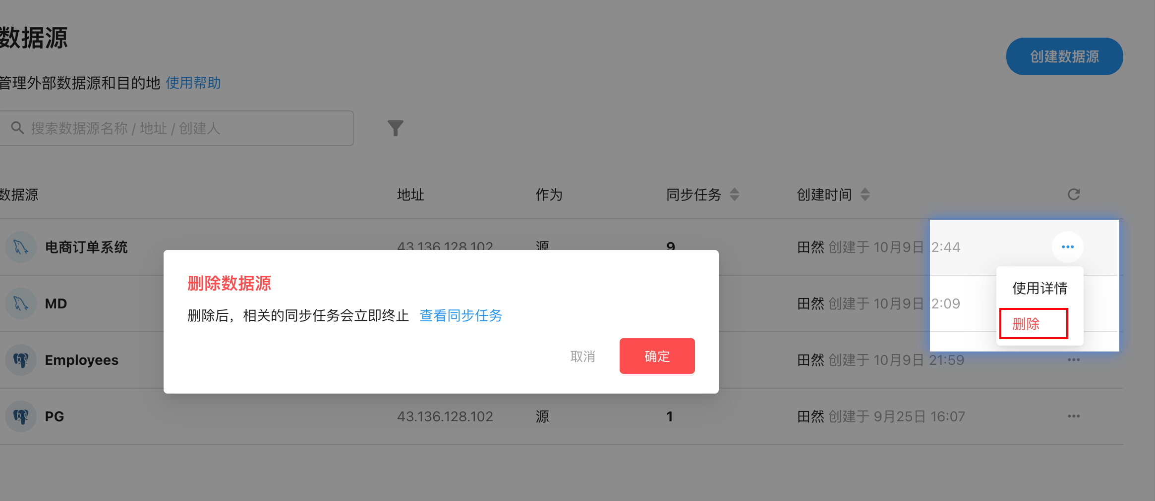 • 查看使用详情:查看哪些同步任务在使用该数据源