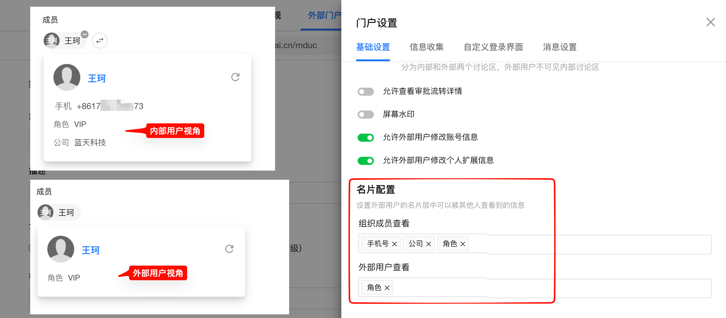 外部门户的可配置模块主要包括用户注册和登录方式、用户注册登录界面设置、用户邀请、审核与管理、角色权限、统计。