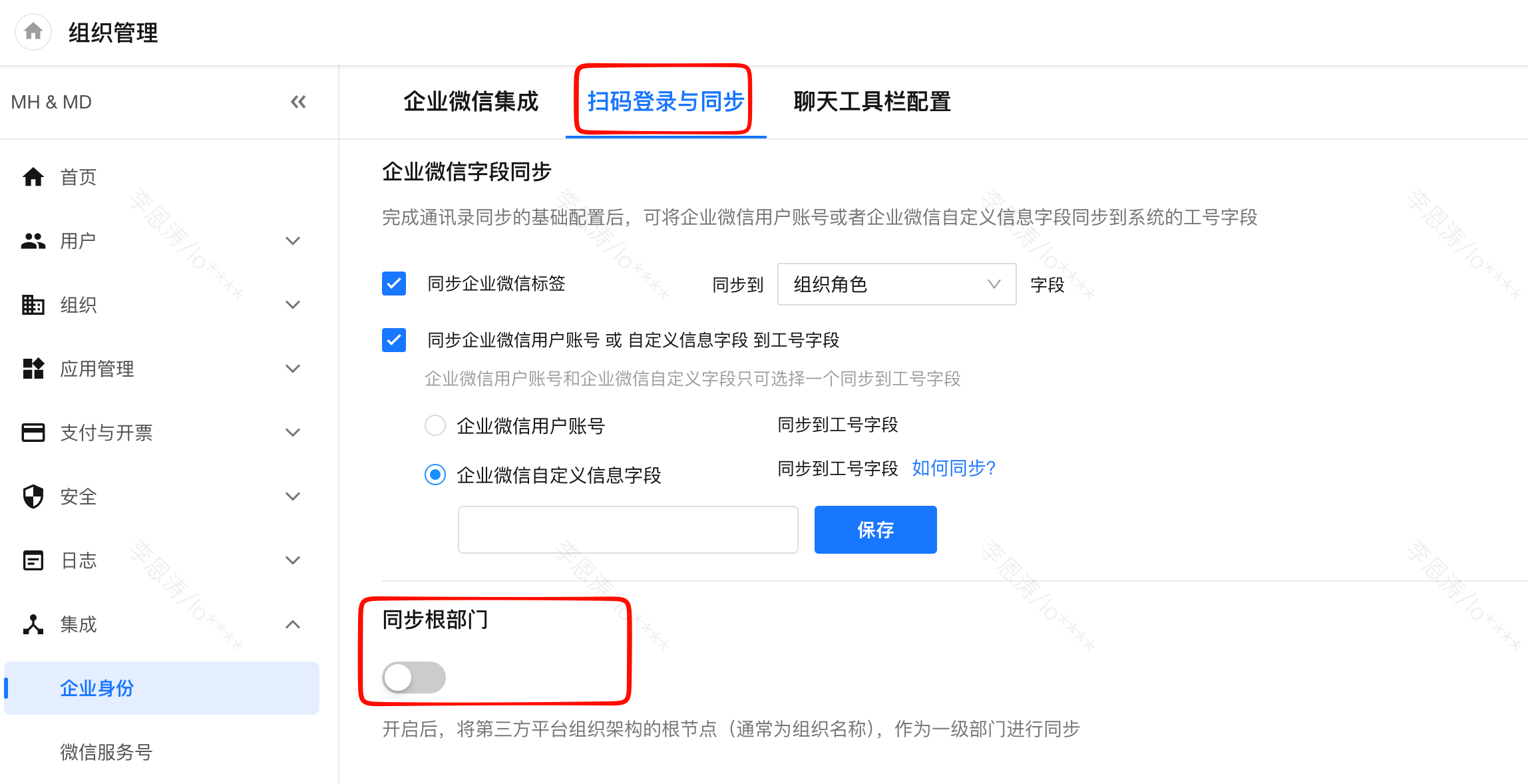 开启【同步根目录】后,将企业微信组织架构的根节点(通常为组织名称),作为一级部门进行同步