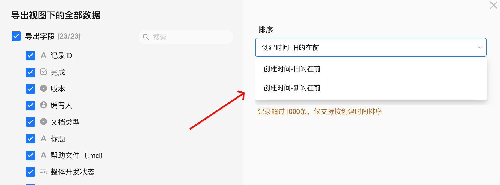 如果导出的记录超过1000条,导出的记录按创建时间排序。