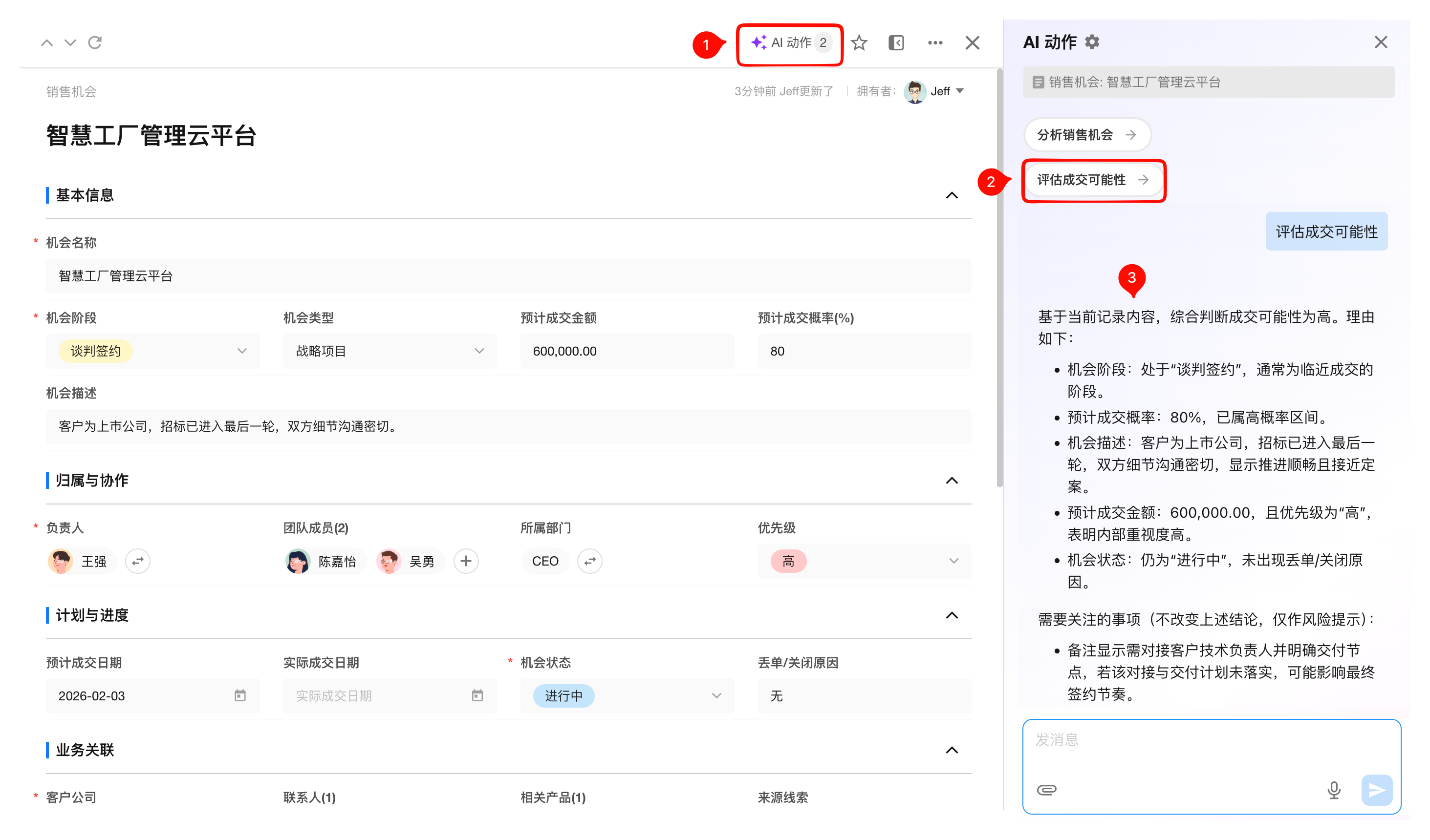 也可以直接选择上面 AI 自动生成的建议动作。