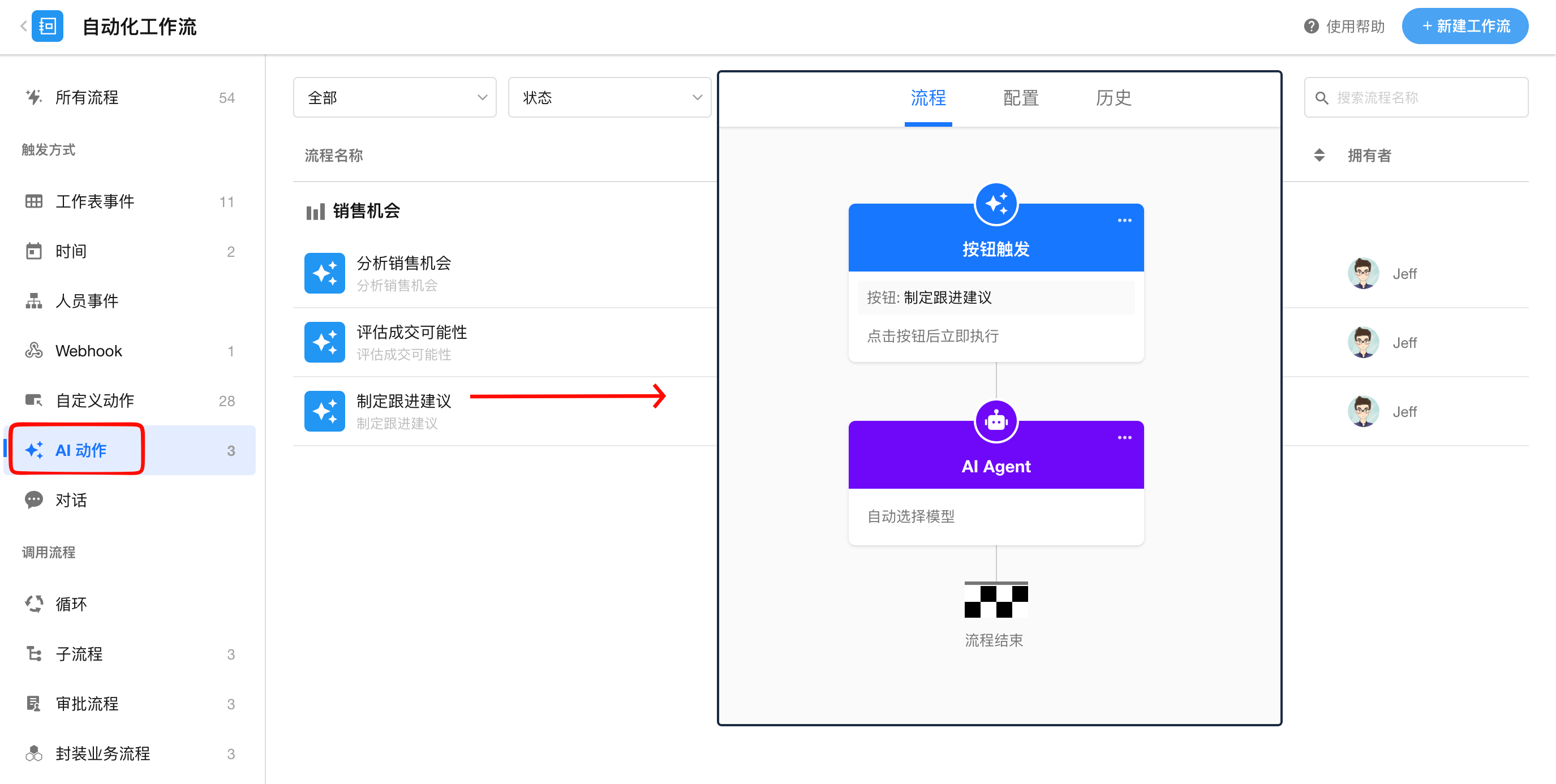 AI 动作工作流
