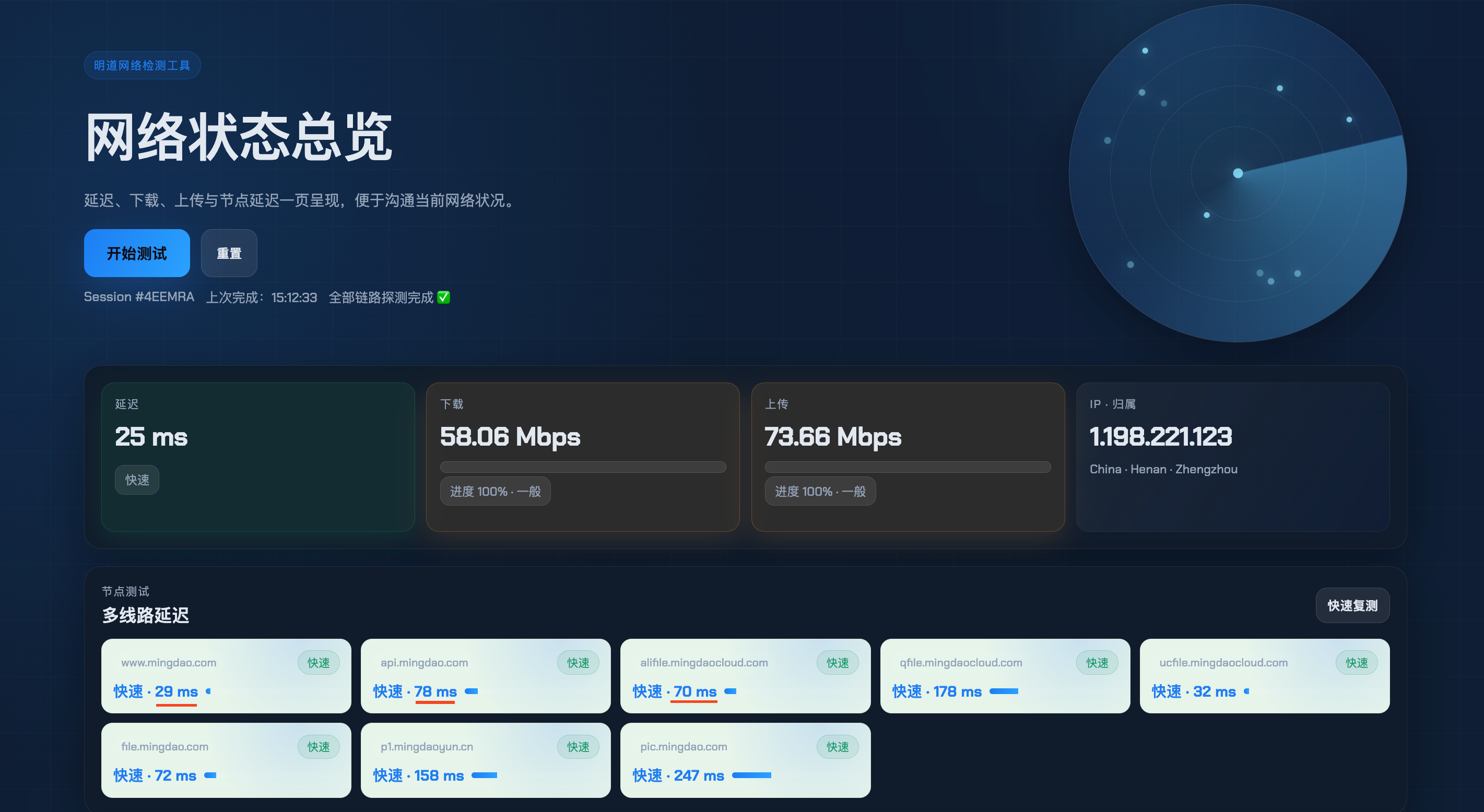 完成以上步骤后,没有优化或需要协助,请提交工单并附上将网络测试结果截图。