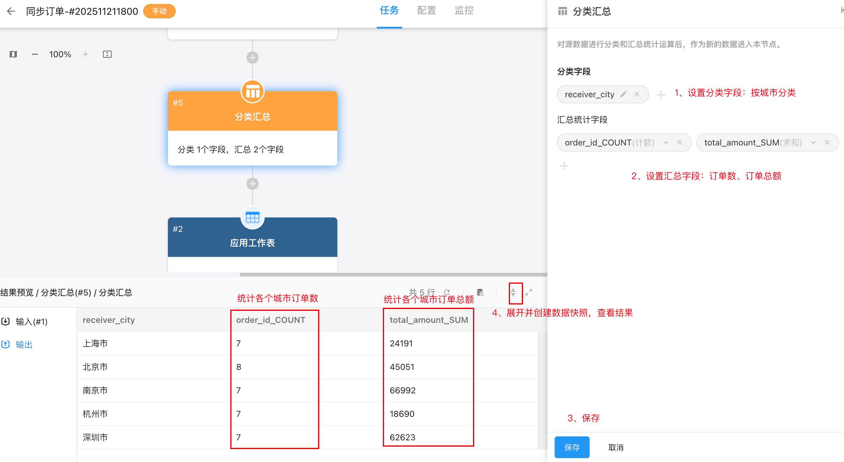 4)点击保存,系统会即时展示匹配结果,用户可展开下方结果预览查看预览数据。