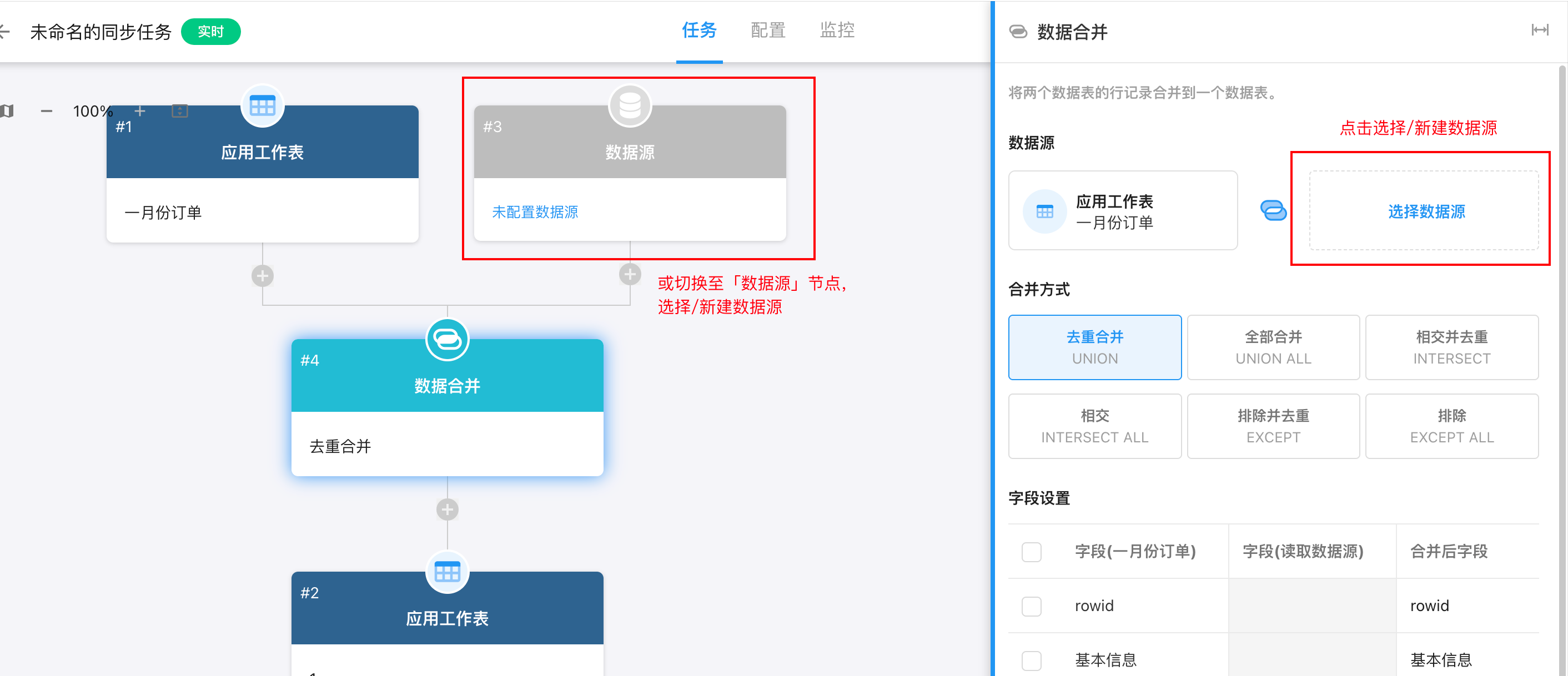 数据处理(ETL)属于数据集成的增强能力,ETL代表Extract(提取)、Transform(转换)、Load(加载),它涵盖了将数据从一个数据源提取出来,经过各种处理和转换,最后加载到另一个数据源的全过程。在同步任务中,除来源和目的地节点外,我们还提供了四个功能性节点,分别为: 筛选过滤、多表连接、分类汇总、数据合并, 下面将对其进行详细介绍。