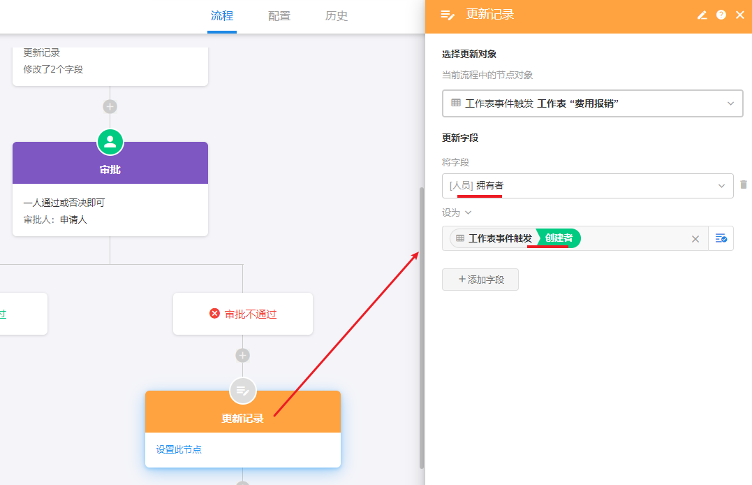 記錄的擁有者默認是記錄的創建人,擁有者可以設置為“未指定” ,創建人是一個靜態身份,無法修改。 因此我們可以通過工作流來實現:
