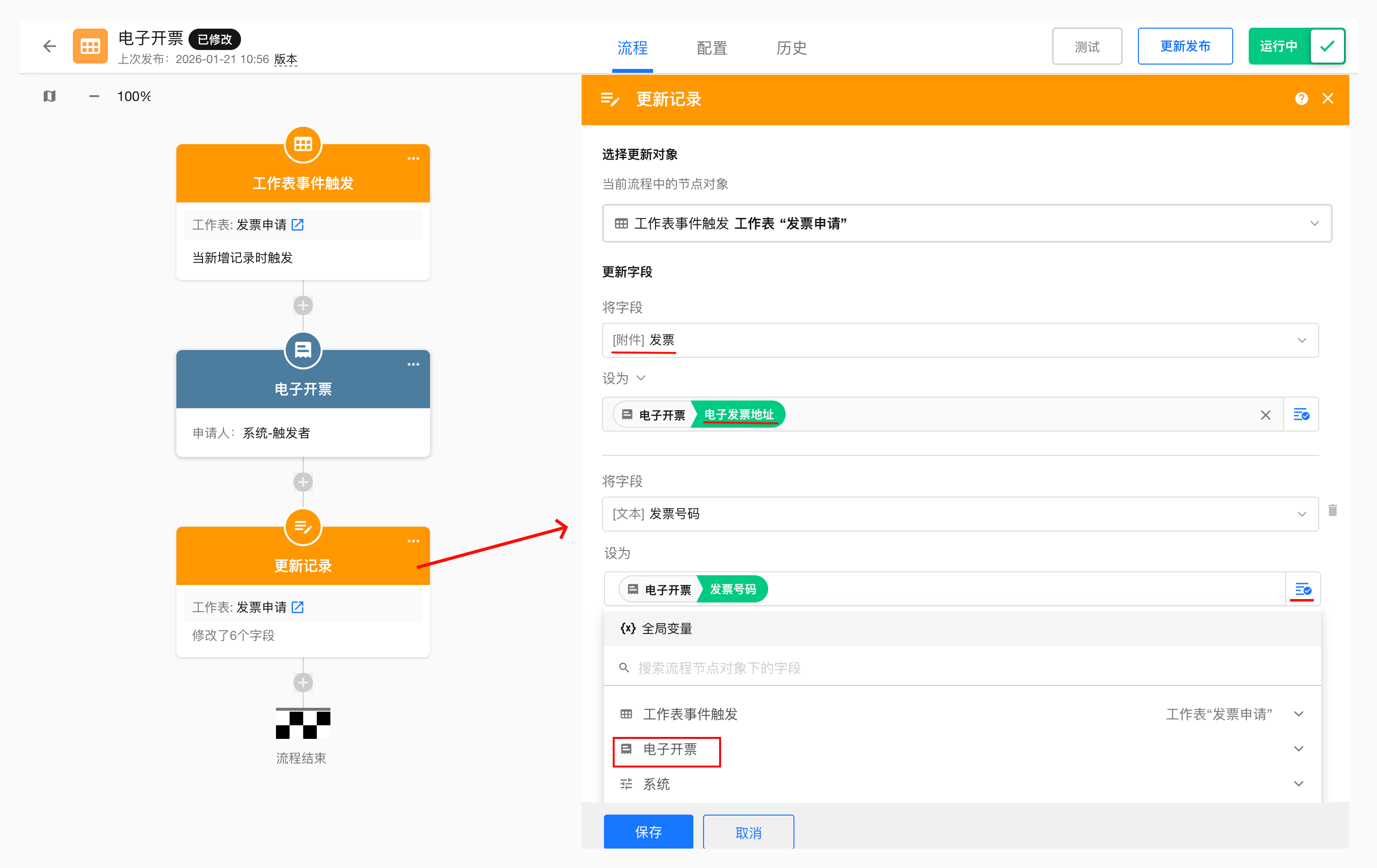 1. 工作流中添加并配置电子开票节点