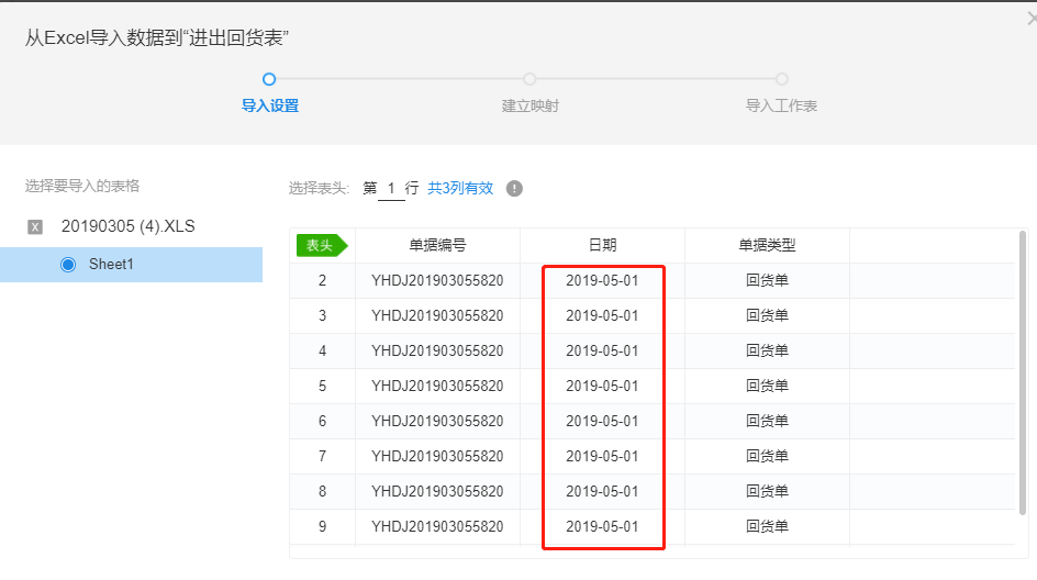 格式調整後,再導入Excel文件,預覽字段時,會顯示正確的日期瞭。